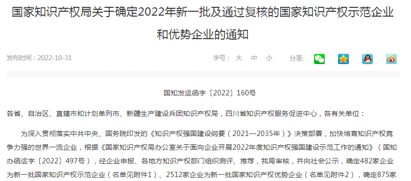 近日,国家知识产权局发布了新一批国家知识产权示范企业和优势企业名单,华体会网页版页面登录-华体会(中国) 成功被评为新一批国家知识产权示范企业,这是自天堰被评为全国企事业知识产权试点单位、全国知识产权优势企业、全国版权示范单位等称号以来,再次获得国家级荣誉。