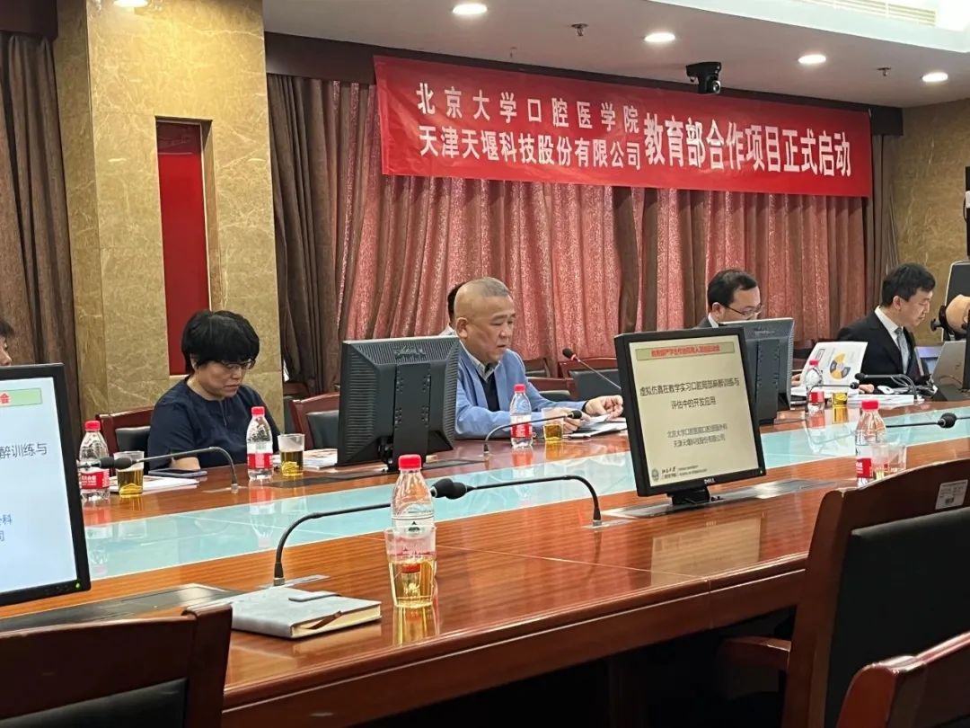 2023年4月24日,在这个春光明媚的日子里,北京大学口腔医院(北大口腔)与华体会网页版页面登录-华体会(中国) (华体会网页版页面登录-华体会(中国))召开“虚拟仿真在教学实习口腔局部麻醉训练与评估中的开发应用”项目启动会。北大口腔副院长李铁军、中华口腔医学会副秘书长刘宏伟、北大口腔教育处长董美丽、虚拟仿真教研室主任侯建霞、口腔颌面外科副主任贺洋、华体会网页版页面登录-华体会(中国)总经理刘雁飞、华体会网页版页面登录-华体会(中国)口腔事业部总经理景颖等人出席,在项目总负责人崔念晖主任主持下,双方展开了热烈而有成效的会晤,确定该项目正式启动。