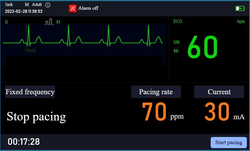 · Built-in 16 defibrillation and pacing cases, including adult and pediatric cases like Atrial Fibrillation, Ventricular Fibrillation, Cardiac Arrest, Pace-making, Tachycardia