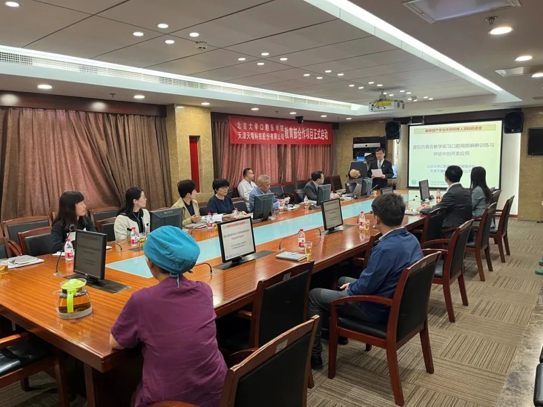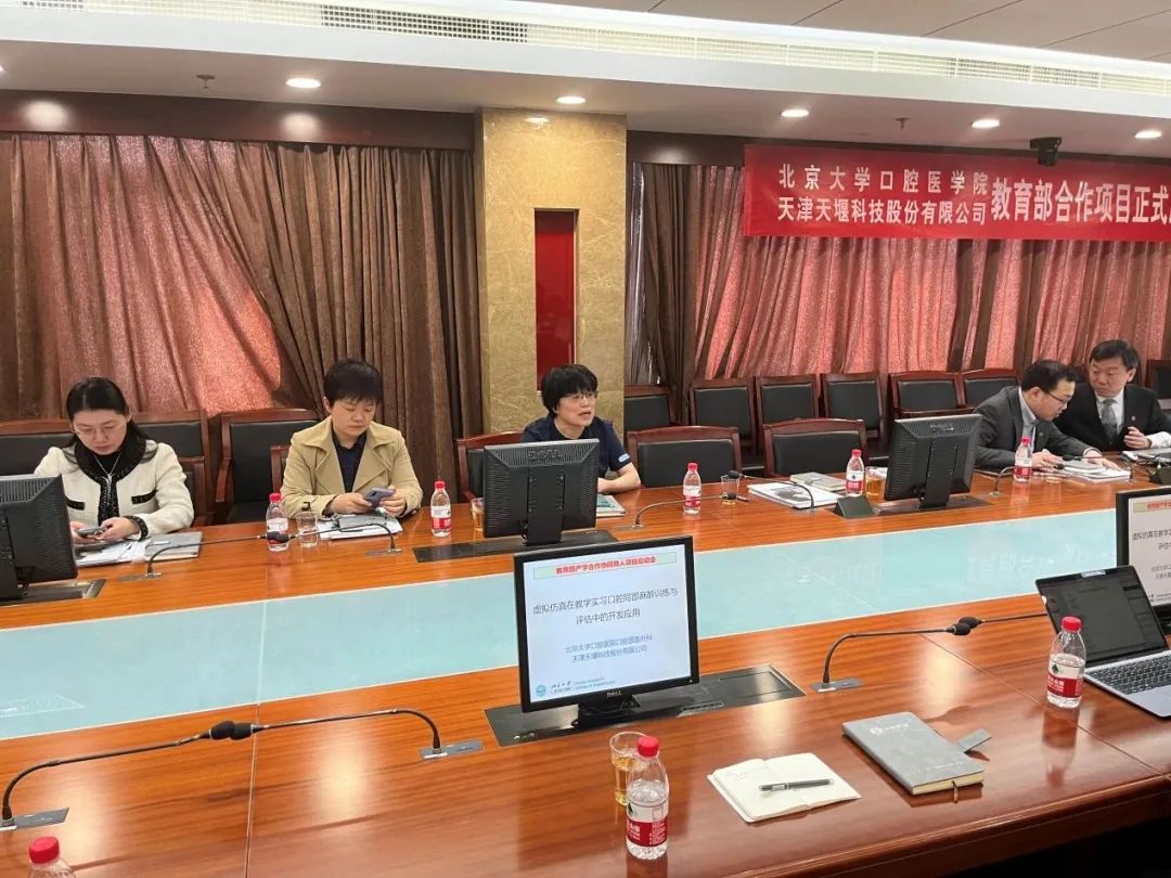 2023年4月24日,在这个春光明媚的日子里,北京大学口腔医院(北大口腔)与华体会网页版页面登录-华体会(中国) (华体会网页版页面登录-华体会(中国))召开“虚拟仿真在教学实习口腔局部麻醉训练与评估中的开发应用”项目启动会。北大口腔副院长李铁军、中华口腔医学会副秘书长刘宏伟、北大口腔教育处长董美丽、虚拟仿真教研室主任侯建霞、口腔颌面外科副主任贺洋、华体会网页版页面登录-华体会(中国)总经理刘雁飞、华体会网页版页面登录-华体会(中国)口腔事业部总经理景颖等人出席,在项目总负责人崔念晖主任主持下,双方展开了热烈而有成效的会晤,确定该项目正式启动。