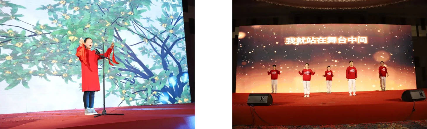 在精彩的晚会环节,多才多艺的同事们带来了精彩的文艺汇演。热情火热的开场舞、喜庆欢快的《好运来》、精彩纷呈的舞龙表演、博大精深的武术,整场晚会喝彩声此起彼伏;来自听障同事们的手语表演《我相信》,让我们感受到了生命的无限可能;充满热情与自豪感的诗歌朗诵少儿响板和《中华颂》,透过孩子清脆响亮的声音展示了对祖国的热爱和对未来的期待;来自销售体系、研发体系、支持体系和生产体系的舞蹈串烧将整场晚会推向高潮。演出结束后,活动在丰盛的晚宴和举杯共庆的祥和气氛中结束。